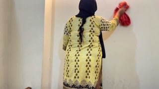 My Beautiful Big Ass & Big Tits Hot Roommate Without Pant wearing Hijab Kamiz Panty & Clean Our Room