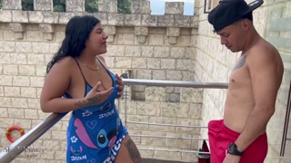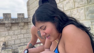 My cute stepsister is alone on the balcony and I come to warm her up to fuck her outdoors