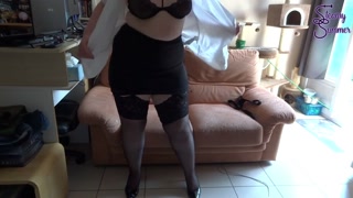 My first striptease - Curvy French girl undresses to music and then touches herself for you