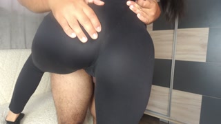 My Indian wife tries on several leggings and sucks my cock