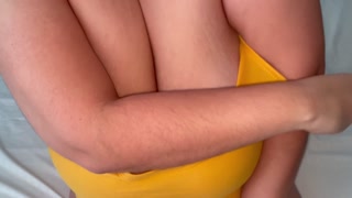 My lover enjoys spanking my huge tits when I touch them