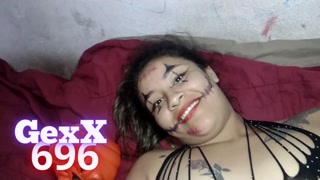 My neighbor shows me off her Halloween 🎃 costume and ends up getting fucked by me and her toy