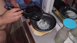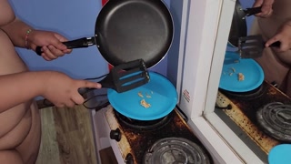 My sex slave eats my cum fried with butter