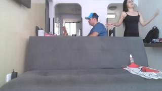 My stepdad didn't want to fuck me so I masturbated nearby while he works