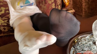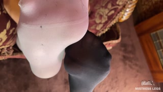 My tasty nylon foot waits for your warm elastic tongue, lick it gentle..