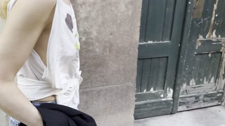 My wife walking, shopping and sitting in a restaurant braless with pierced nipples public