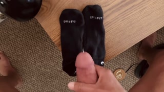 Naked jock shoots all over