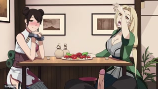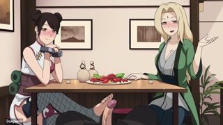 Naruto - Kunoichi Trainer - Tsunade rides cum and Ten Ten gives a footjob