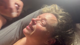 Naturally beautiful wife, morning hand job, feet big tits, facial, great dick sucking