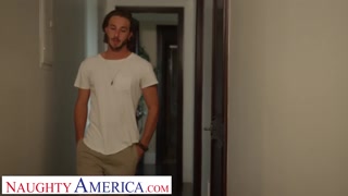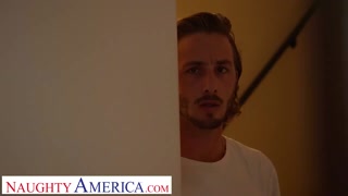 Naughty America - Busty blonde MILF Ryan Conner finds her son's friend peeping on her, then invites