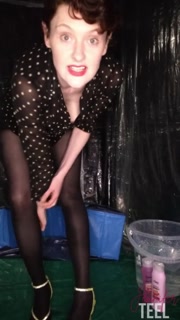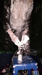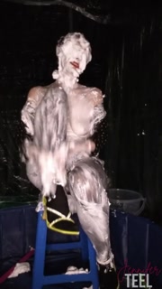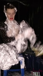 Naughty secretary late for work, rubs shaving cream on her body