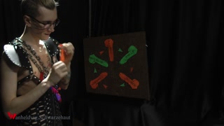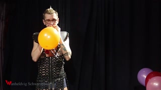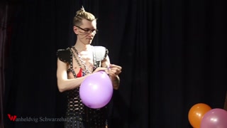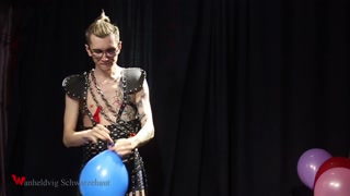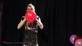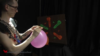 Nicky as a superhero destroys balloons
