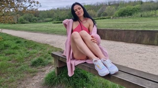 Nicky Brill no panties in public park and pissing