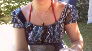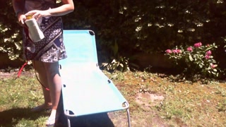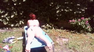 Nicoletta sunbathes in a public garden wearing a big dirty diaper