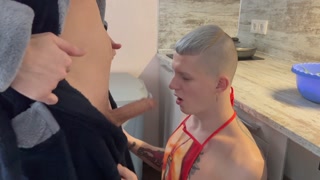 No437 Cooking breakfast naked for daddy, seeing this, he could not resist licking me