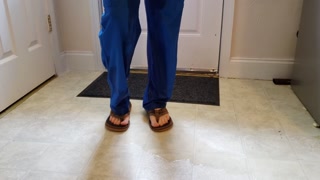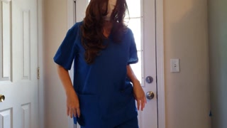Nurse wetting her scrubs