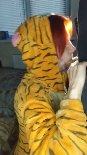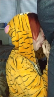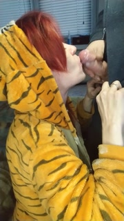 Obedient tiger girl sucks dick