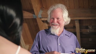 Old man puts his cock inside two hot teens