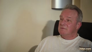 Old vs teen takes facial cumshot and swallows cum after fucking him