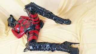 OnlyFans teaser - My red latex catsuit with integrated vaginal and anal condoms!