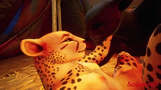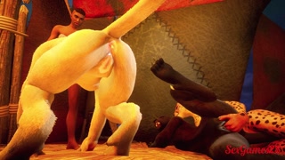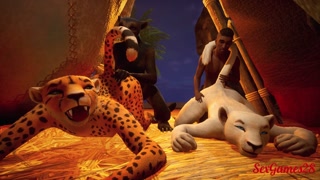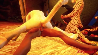Orgy between furry lesbian girls with lucky guy