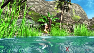 Outdoor hot sex! Big black cock fucks hard a sexy blonde in the island