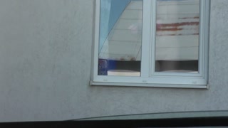 Outside the house naked woman on the street. The taxi driver saw a naked woman cleaning the window of the apartment. Public