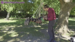 Park Suspension #3 - Girl tied in a cartoon tie & suspended from a tree
