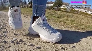 Part2 Fila Destrudor Shoeplay Nylon feet and Crush Trample Trailer Sneaker girl Feet