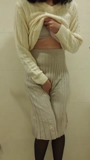 [Pee Desperation] Dirty peptite Girl wet her white skirt and black pantyhose with no panties