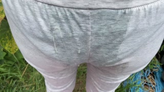 peed leggings on him in public park (risky) he cums & piss on me
