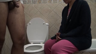 perverted amateur mom watching her stepson piss in front of her