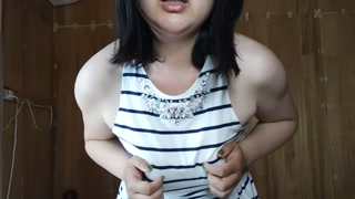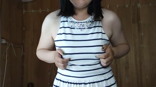 Perverted busty Japanese woman who masturbates nipples while holding her pee ♥️