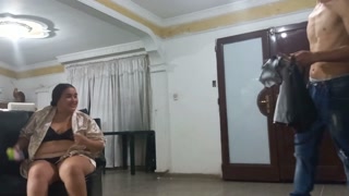 Perverted technician pays a visit and debuts at home alone