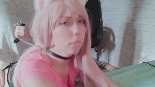 pet the catgirl and fed her with cum