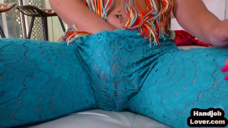Petite handjob babe in lingerie strips and wanks pov bf