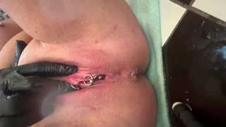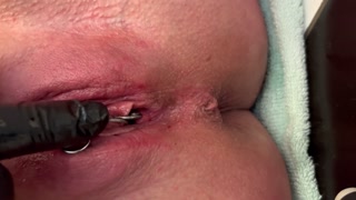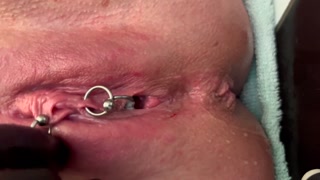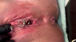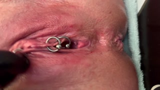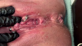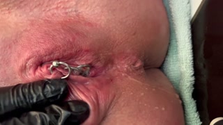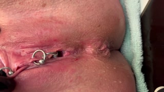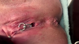 Pierced Clit Hard Rubbing in Latex Gloves and Hard Stream PEE
