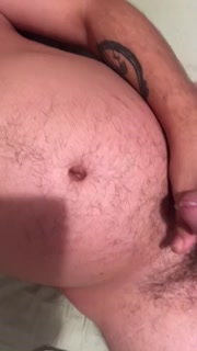 Pig cums on bloated belly