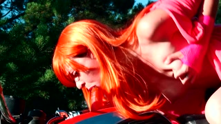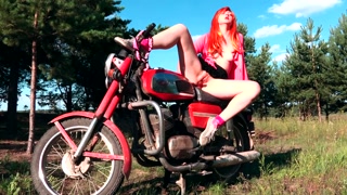 Pink motorcycle masturbation OUTDOOR