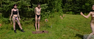 Piss Ballet -- Kinky submissive dances between 2 face fucking doms while showered in piss
