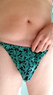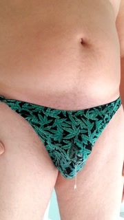 Piss desperation and cum wearing a thong
