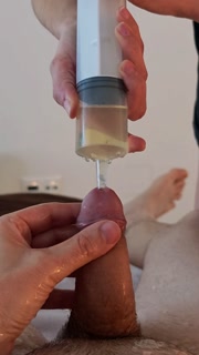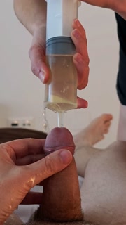 Piss injection. She injects her piss into his urethra.