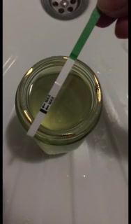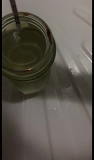 Pissing girl into a coffee jar and tastes urine. 2nd day of ovulation test