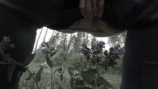 Pissing in the forest mature bbw milf with a big bush on her pussy. POV.