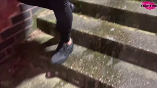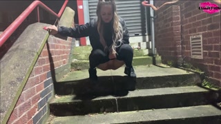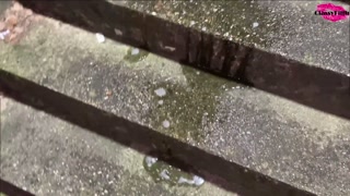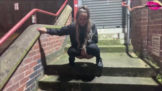 Pissing on a public staircase
