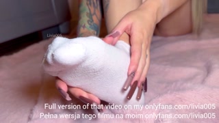 Playing with my feet on a dildo, wearing white socks