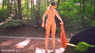 Plug me in. Jeny Smith twerking naked outdoor with a toy