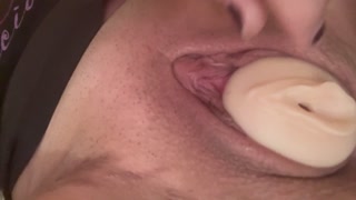 Pocket pussy stuffed in my little hole and fucked with dildo
