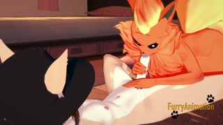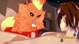 Pokemon Hentai - Flareon blowjob to dog with cum in her mouth