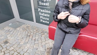 Poluna Loves walks around the city 😏, sucks cock 🍆💦, and fucks in a public toilet 🔥.